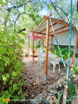 Terrain de 2899 m² complanté d'arbres fruitiers, oliviers, potager, espace piscine hors sol, cuisine d'été